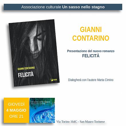 Felicità è il nuovo romanzo di gianni contarino: la presentazione presso l’associazione culturale “un sasso nello stagno di san mauro torinese.
