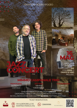 Il 16 maggio alle ore 21:00 Il Frantoio Rosso Ipogeo presenta il concerto Jazz: